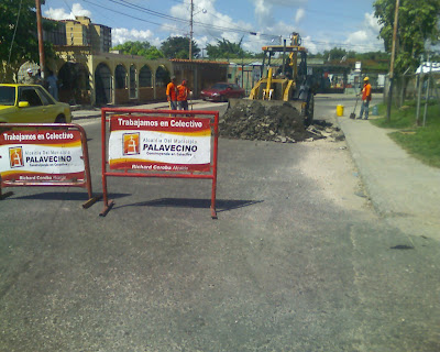 CONTRALORIA SOCIAL; Hoy con efectividad, el equipo de bacheo de la alcaldia del municipio Palavecino repara el mal bacheo de la Av Prin urb Tarabana.